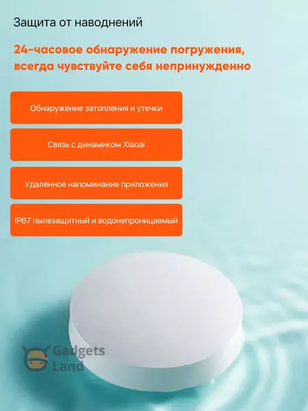 Датчик протечки воды Flood Guard имеет высокую чувствительность, срабатывает при высоте воды 1 мм, при срабатывании производится уведомление об опасности, световая и звуковая сигнализация и отправляется уведомление на смартфон.
