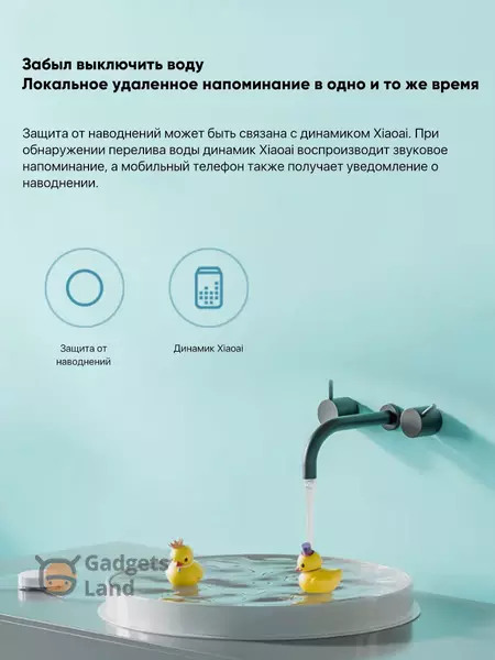 При срабатывании датчика, он может включить настенную розетку или выключатель, и выключить электромагнитный водяной клапан, предотвращая более существенное затопление. Для реализации данной функции необходимо установить электромагнитный водяной клапан, дополненный умной розеткой или выключателем Xiaomi.